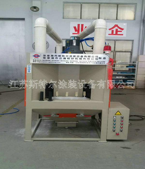 該設備不僅為客戶節約了人力物力,更為客戶的產品提升了一個檔次。行星轉盤式自動噴砂機配置6把高效噴砂槍,