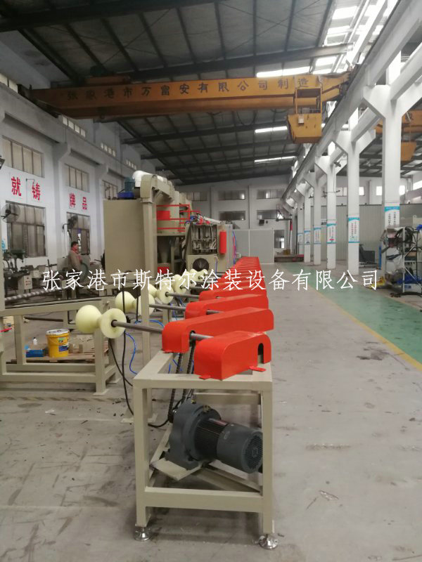 加工制作位置φ273-800mm, φ273mm的管線依據線速度多達到120m/h,用到直流變頻空調減速機控制;氣流輸送輪,主要采用包膠工序制做,狠抓不碰傷產品;設置過濾器式加砂口個;