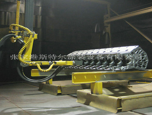 斯特爾公司研發的數控全自動噴砂房能夠在很大程度上減低營銷推廣利潤和提升自己有效率并且能夠在質量上優與手工操作,我公司在滿足生產質量、生產效率、運行成本的理念下研發機器人噴砂(丸)房。
